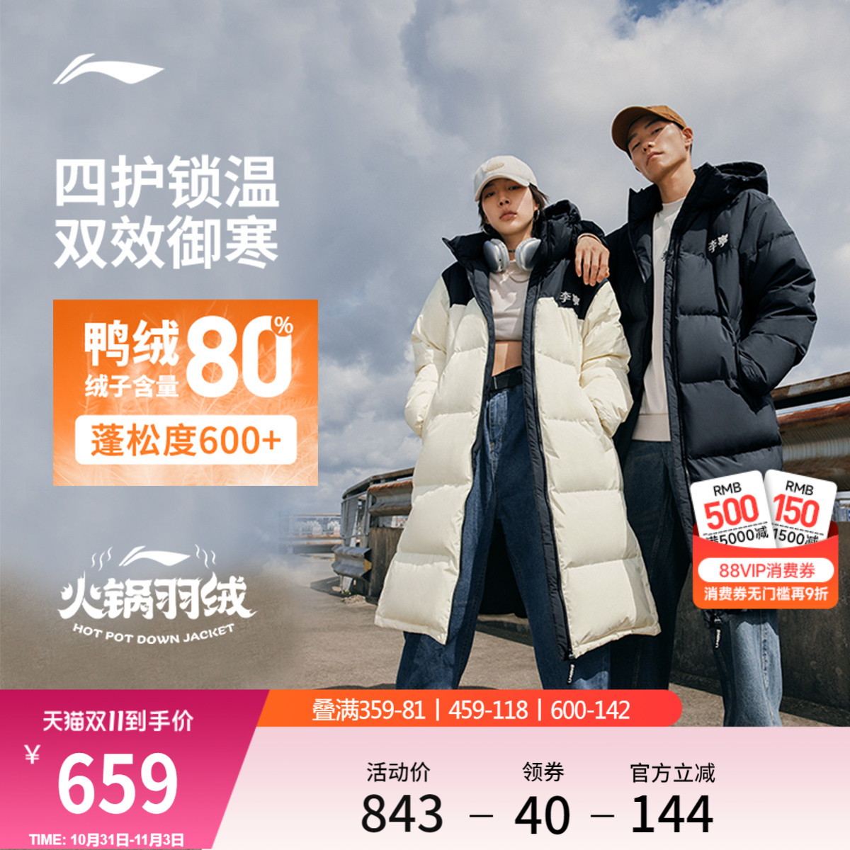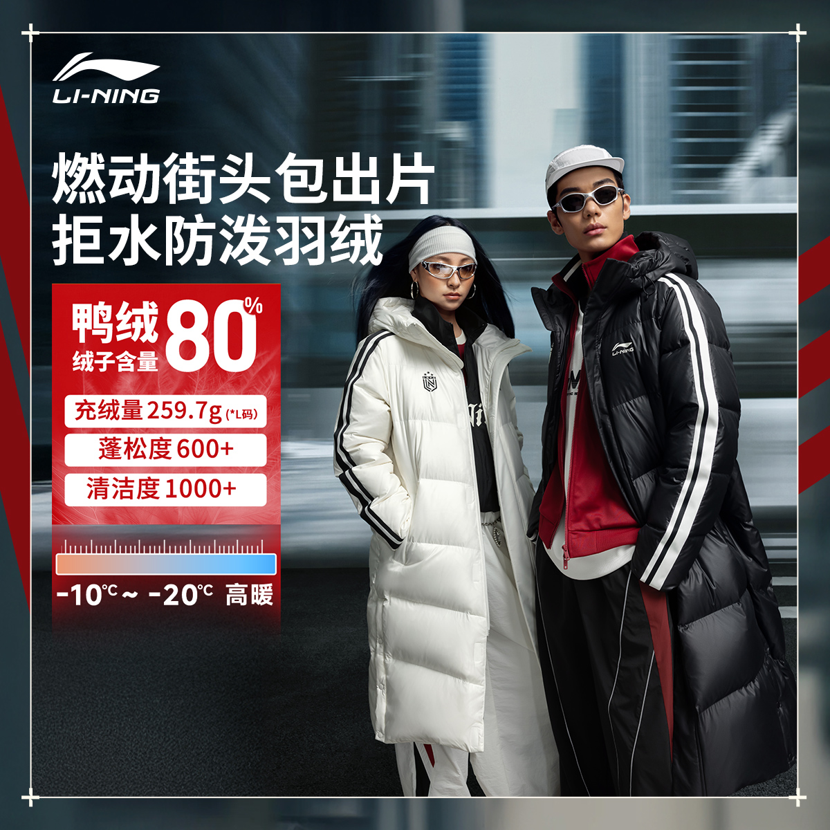 Li Ning hot pot down jacket丨Men's winter duck down thickened top couple warm clothes long sports jacket women