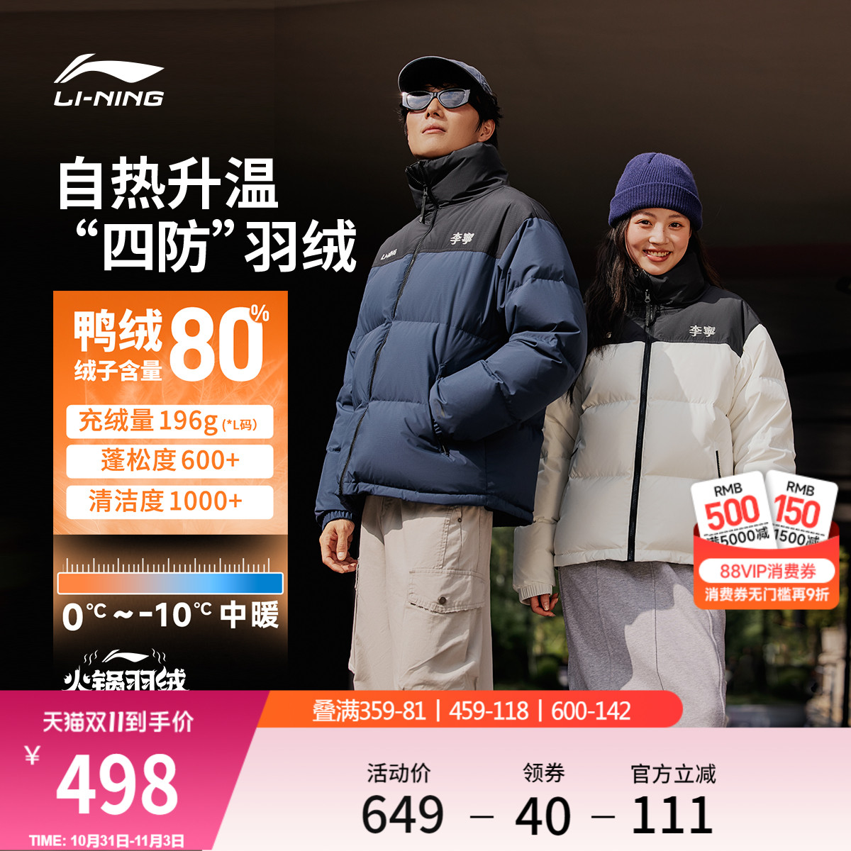 Li Ning hot pot down jacket丨Men's winter duck down cropped clothes for couples warm tops stand-up collar sports jackets for women
