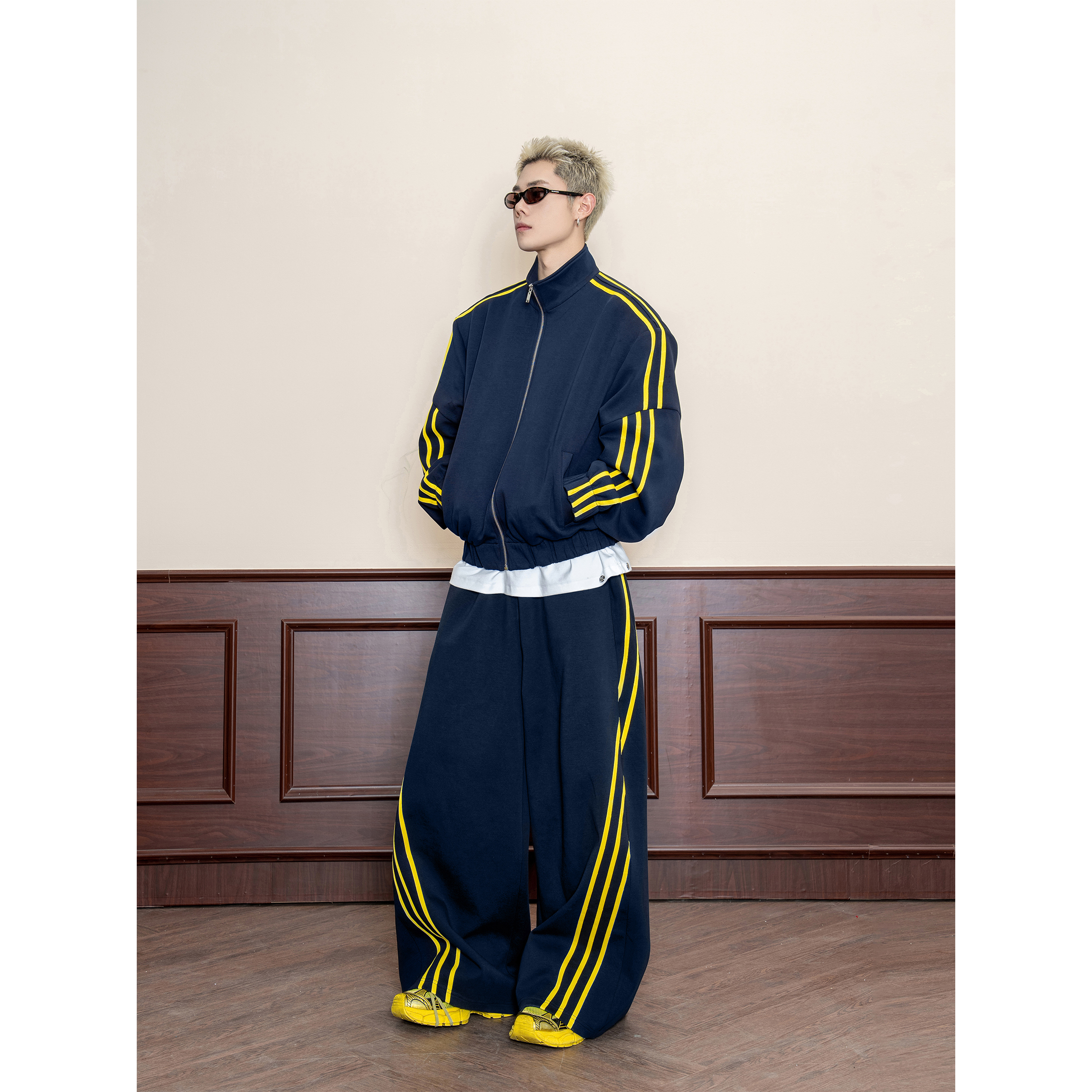 DBW Doublewin niche deconstruction contrast air layer turtleneck sweatshirt men's scimitar slacks sportssuit