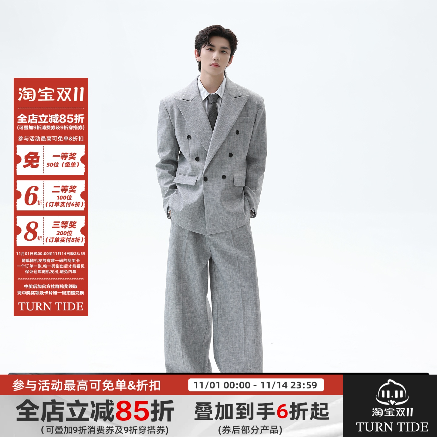 TURNTIDE V-neck suit with classic texture blazer with loose trousers and slacks for high-end autumn