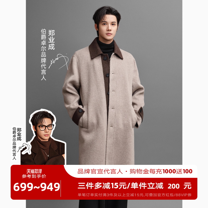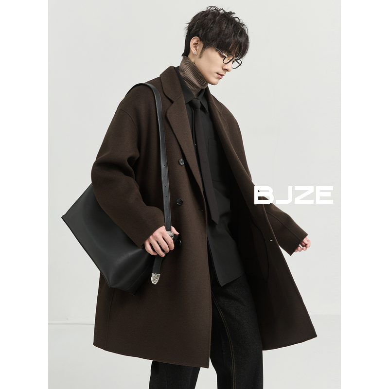 [Full wool/goose down liner] BJZE Autumn and Winter Warm Handmade Reversible Tweed Coat Mid Length Men's Coat