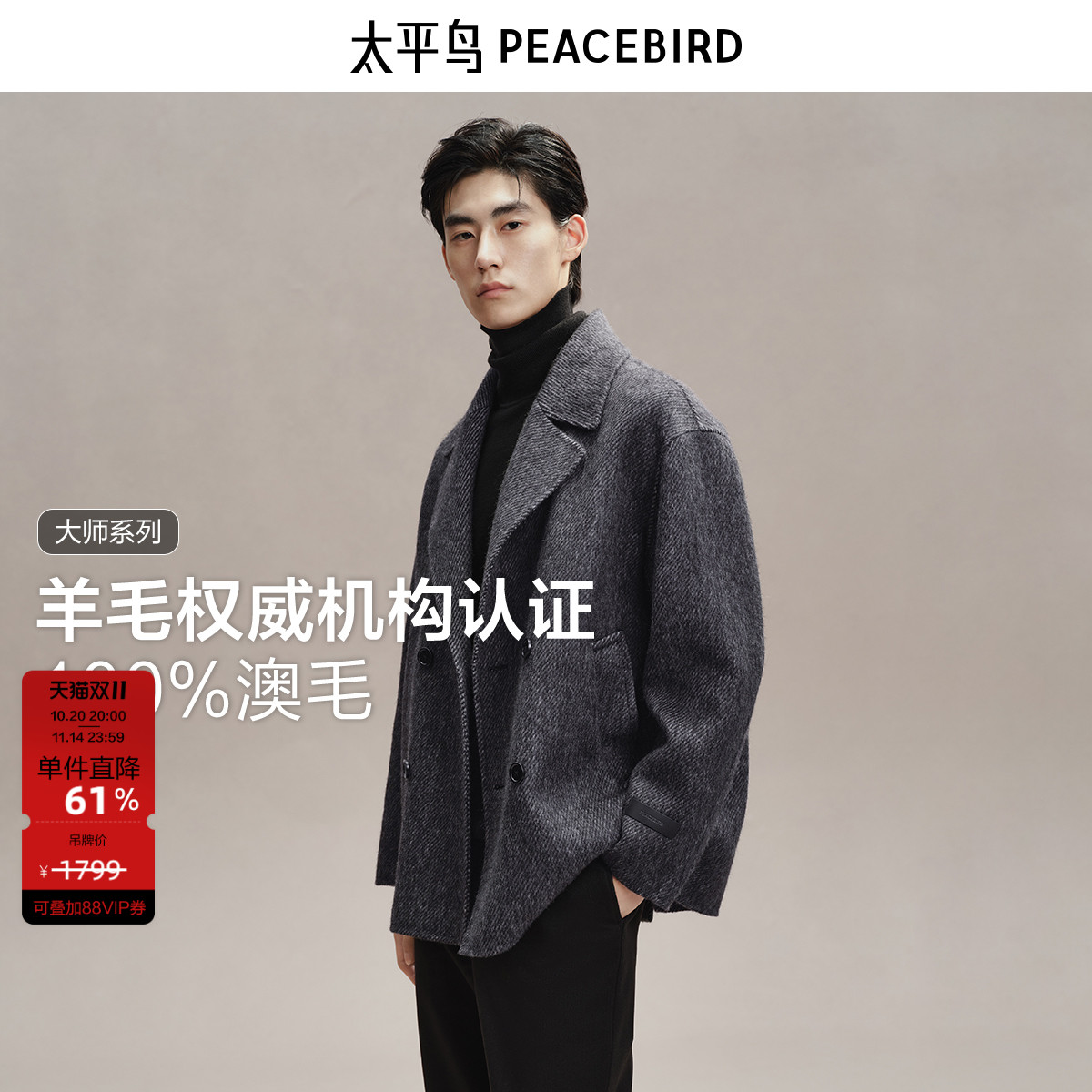 【Pure wool】Peacebird men's lapel woolen jacket short winter long-handed woolen coat jacket