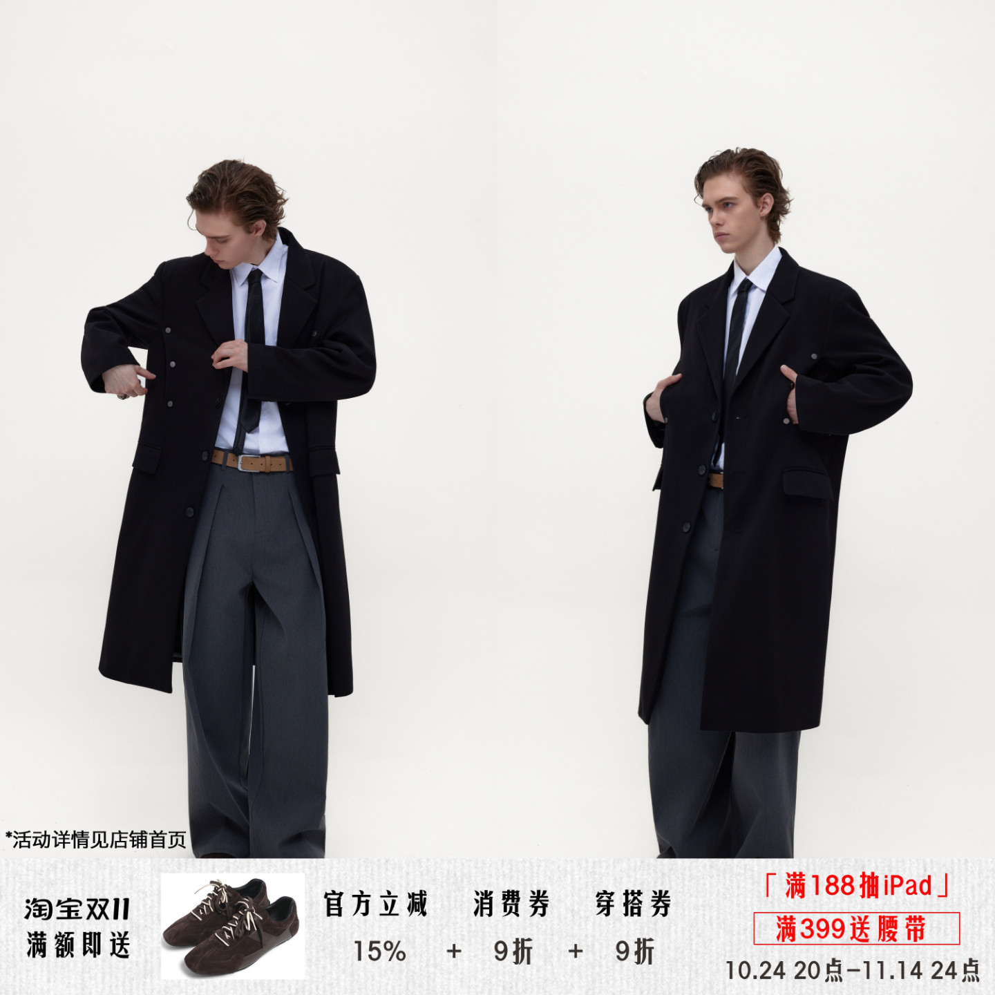 FREO3N double-breasted woolen jacket is a new extra-long loose woolen coat for both men and women in the fall and winter