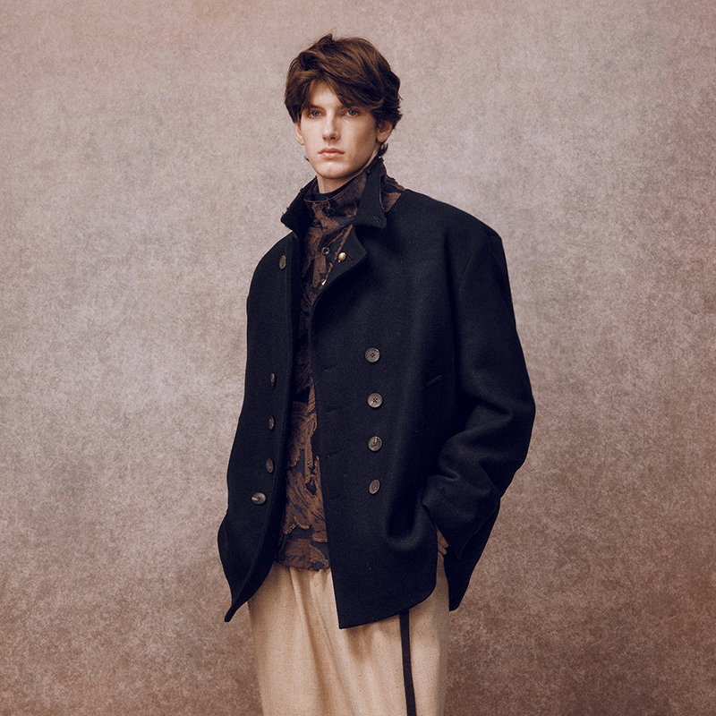 Desaturate24/AW 100% wool reversible woolen jacket Korean version of oversized shoulder pad coat men's long model