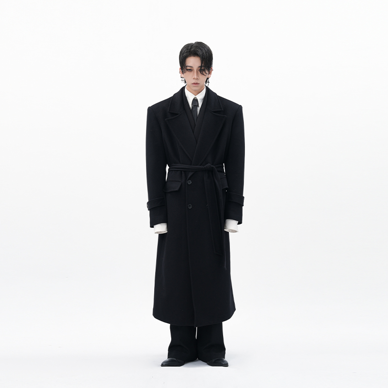 HARH "Urban Battle Robe" original 70% wool coat heavy work tunic shoulder pad long cashmere woolen jacket