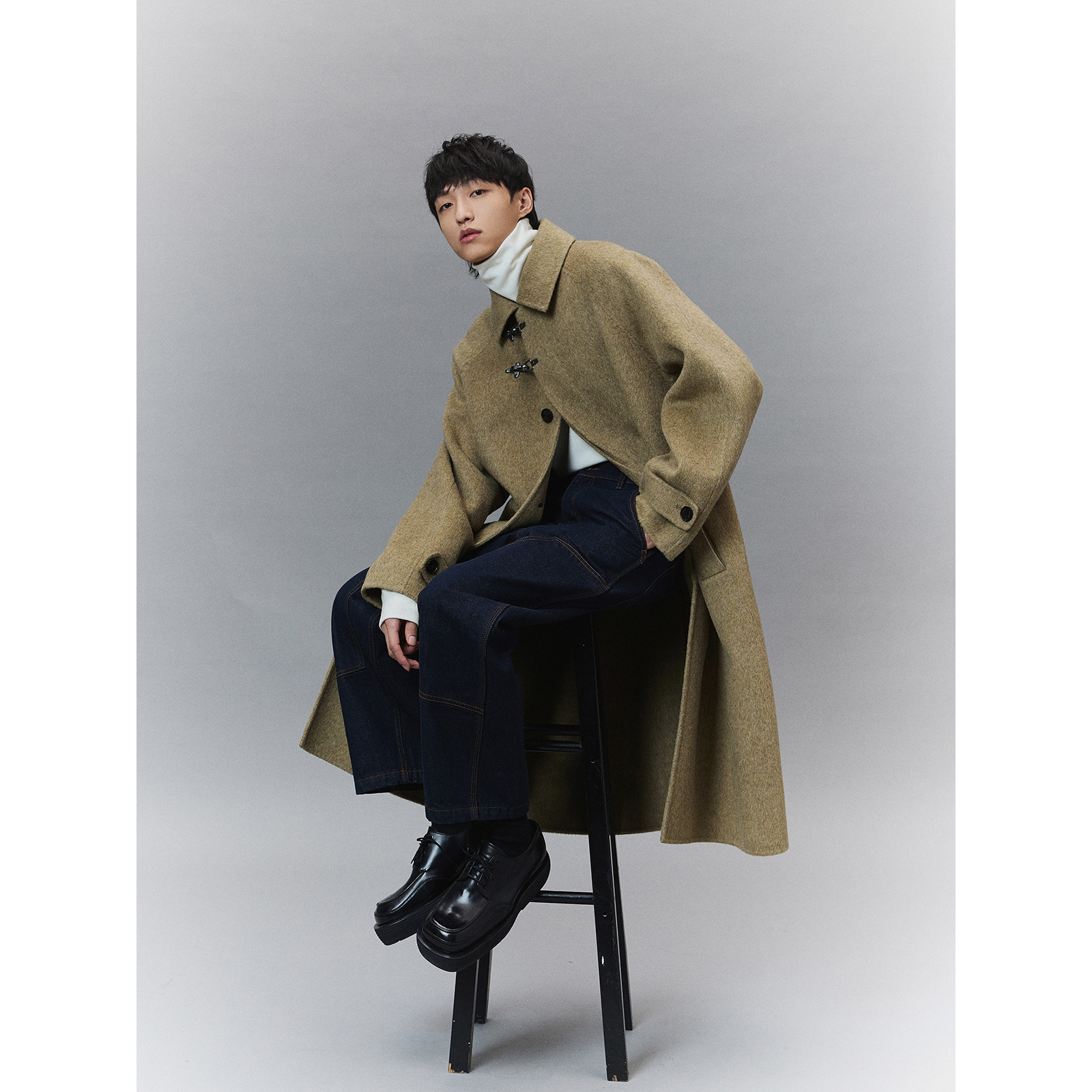【900g heavy double-sided wool】CULTUM autumn and winter double-breasted woolen coat men's over the knee long loose jacket