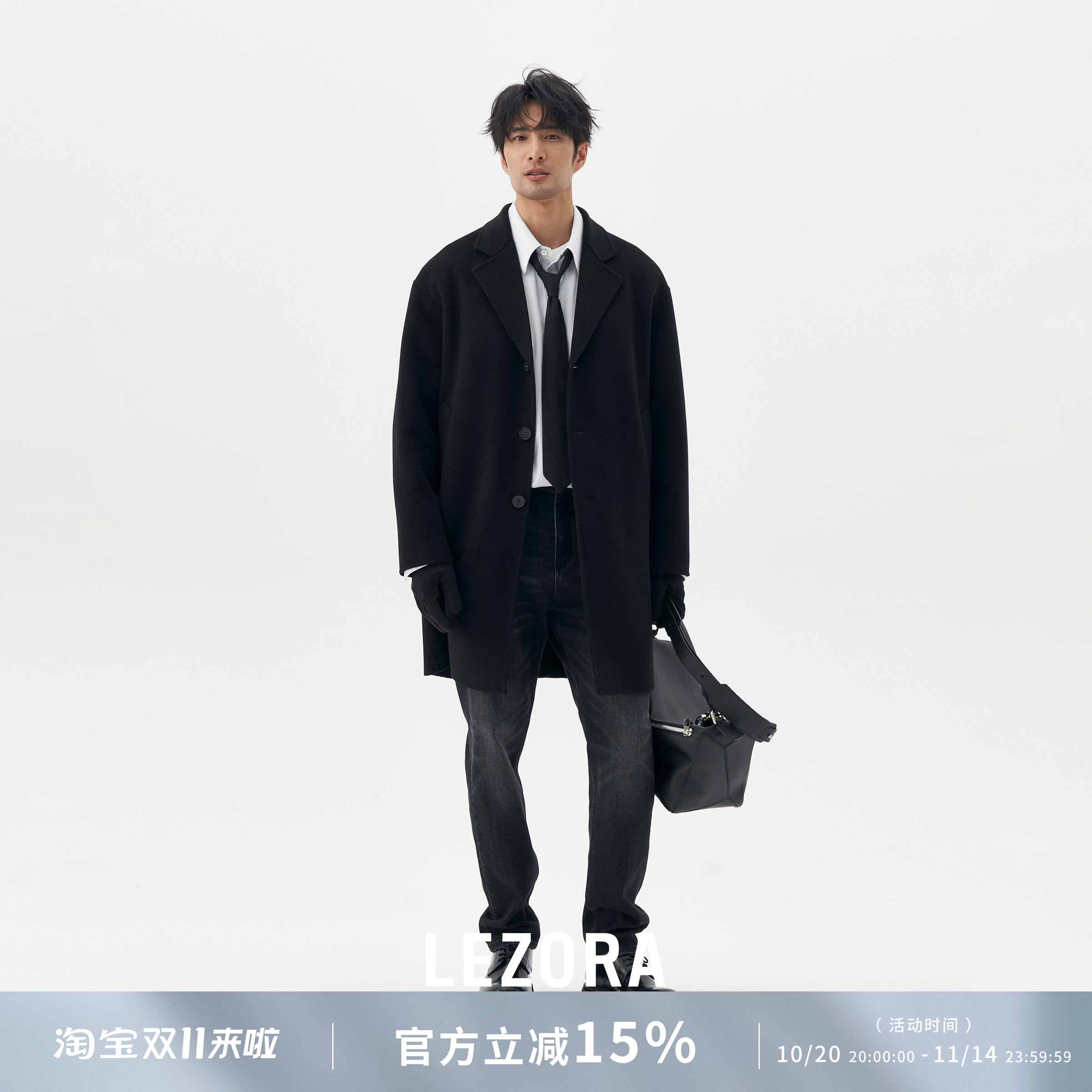 LEZORA sexual tension is full! Autumn and winter double-sided cashmere micro-silhouette mid-length cashmere woolen coat for men