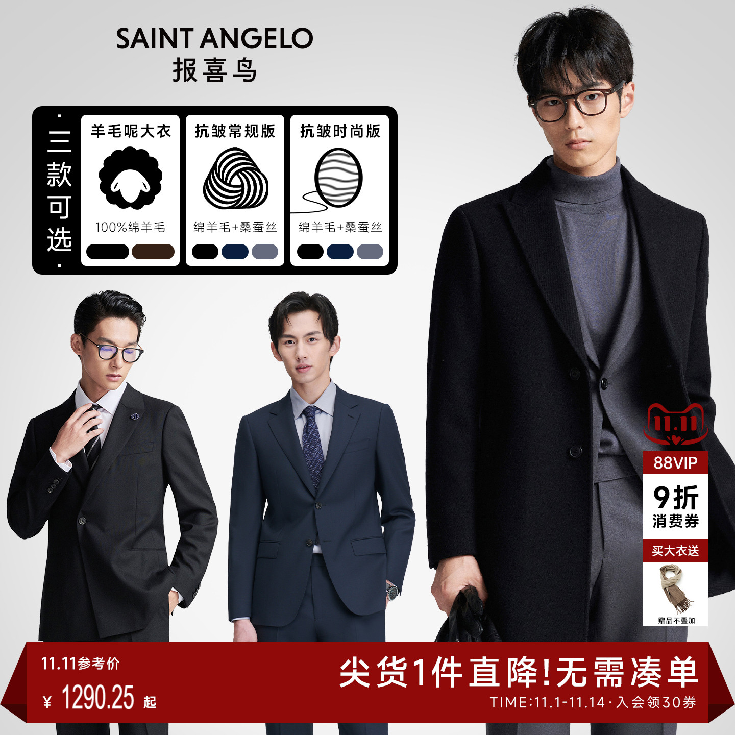【100% wool】Annunciation bird men's business formal suit trouser suit suit Chester woolen coat jacket