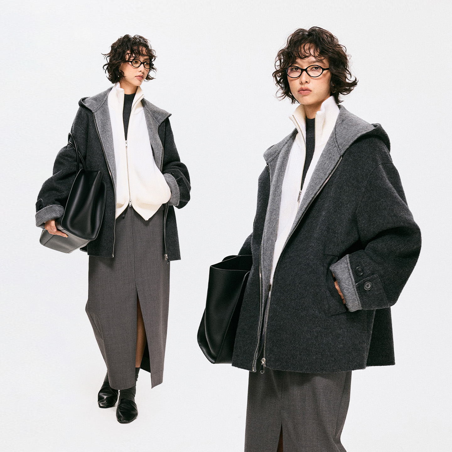 COTTON LAB [Small Fur] cape-type hooded woolen jacket wool coat is the same style for men and women