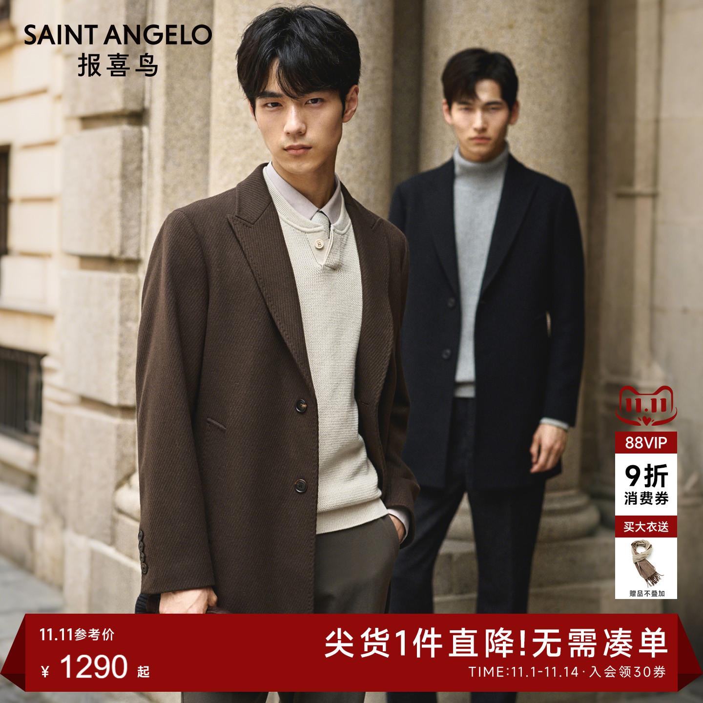 【Chester 100% wool】Annunciation bird autumn and winter new men's woolen coat business casual midi coat