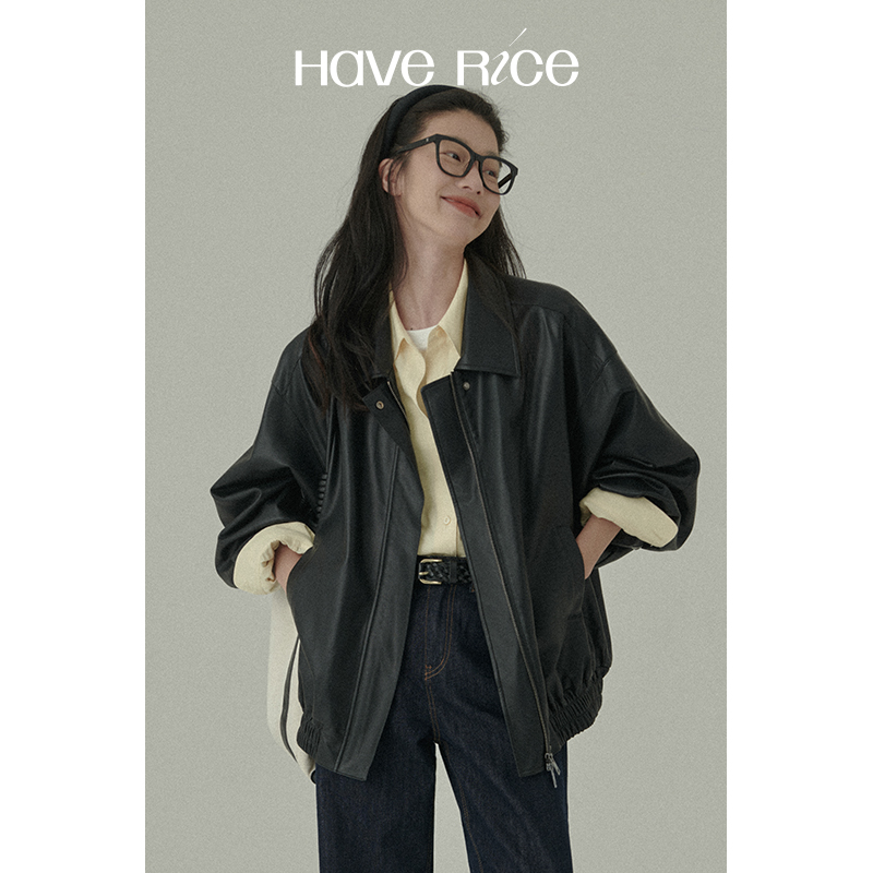 HAPERICE Restaurant New Pink Experience Model 2025 New Spring and Autumn Classic Drape Soft Jacket Leather Jacket
