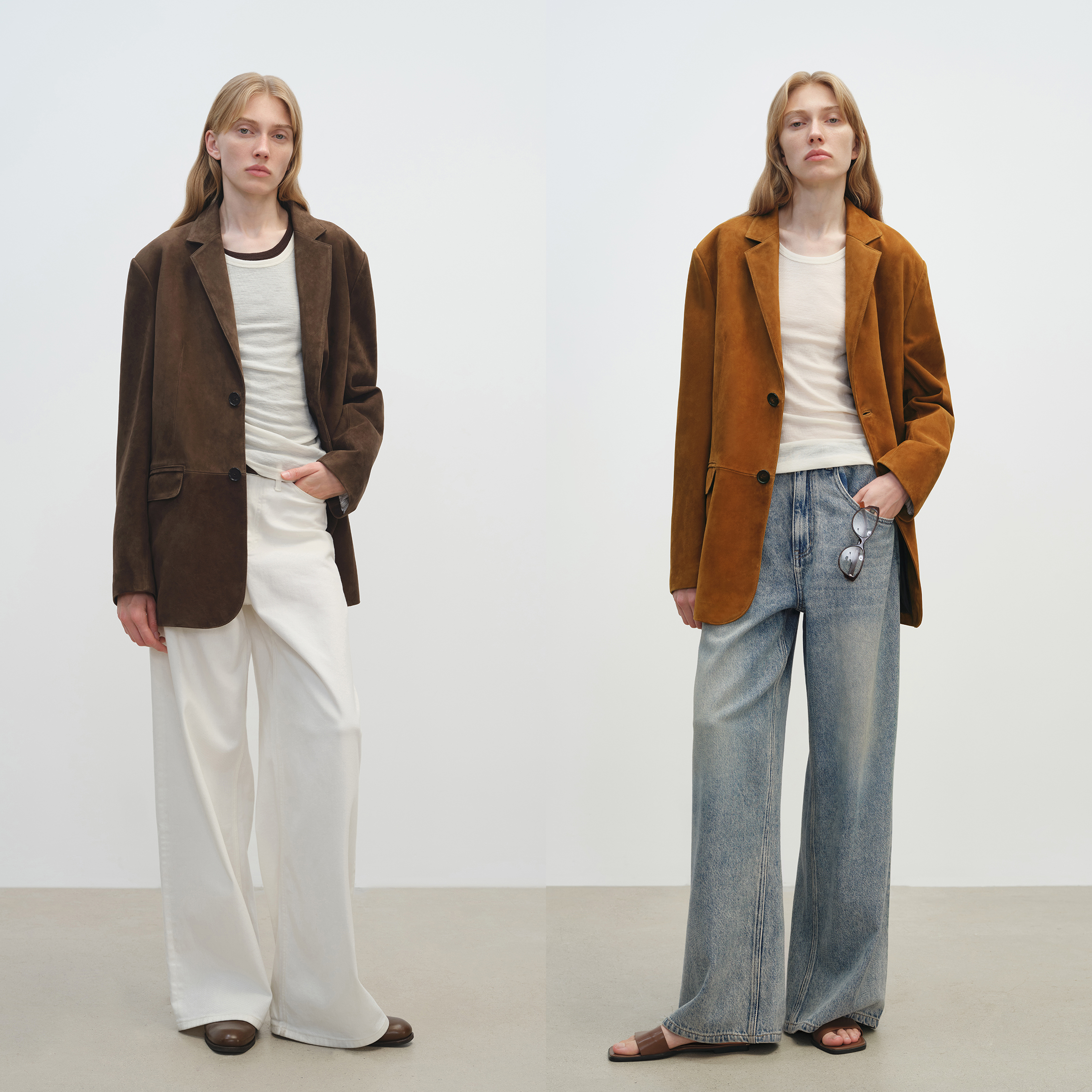 MSBEAST imported sheepskin suede silhouette Maillard leather jacket blazer women丨Nordic harbor