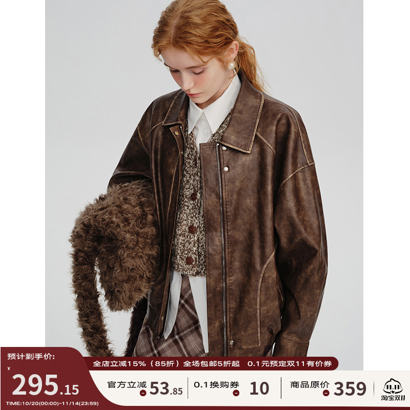 Brown leather jacket spring and autumn 2025 new PU leather jacket American retro cool wind bell Chuxi is the same style