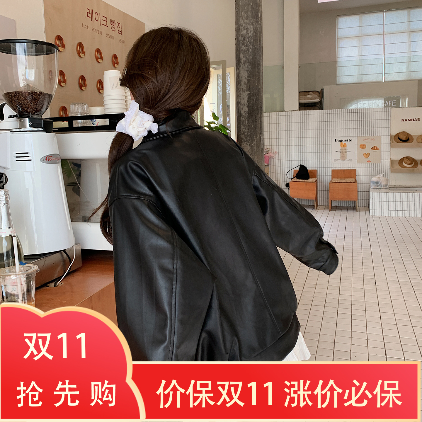 Leather jacket women's black short small man 2025 spring and autumn new retro Hong Kong style loose spring leather jacket