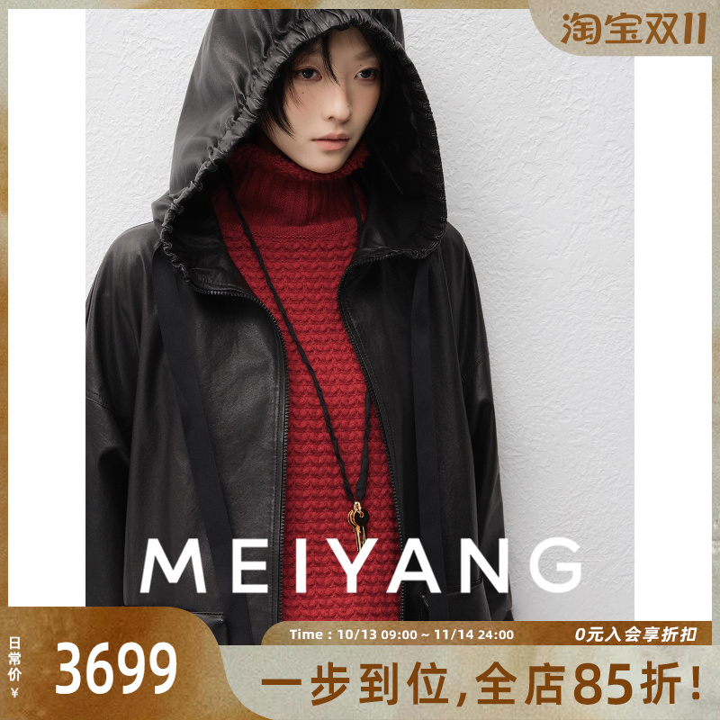 MEIYANG large cloak leather jacket vegetable-tanned sheep leather|genuine leather simple hooded jacket-Thursday