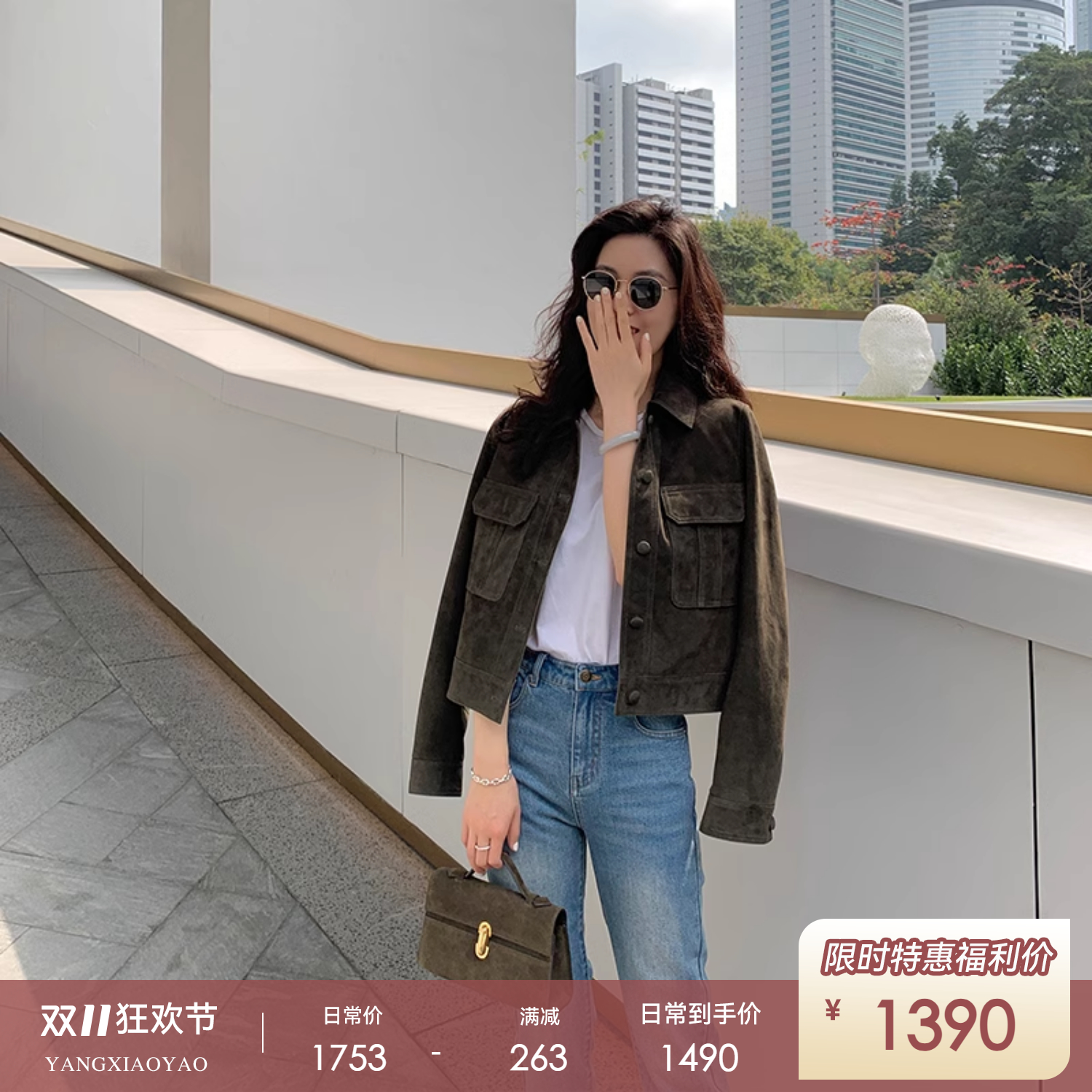 Yang Xiaoyao old money leather jacket retro imported high-end cashmere leather jacket women's jacket short leather jacket autumn new style