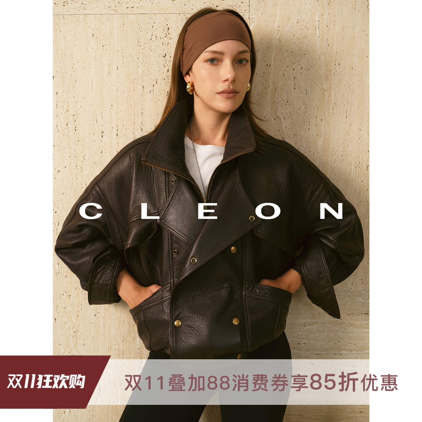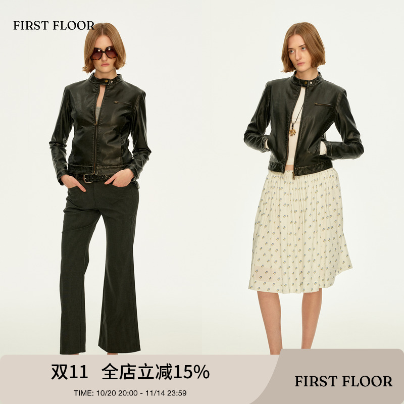 Xinlei Lin "Brook Block" vintage matte textured leather jacket women's silhouette jacket new for autumn and winter
