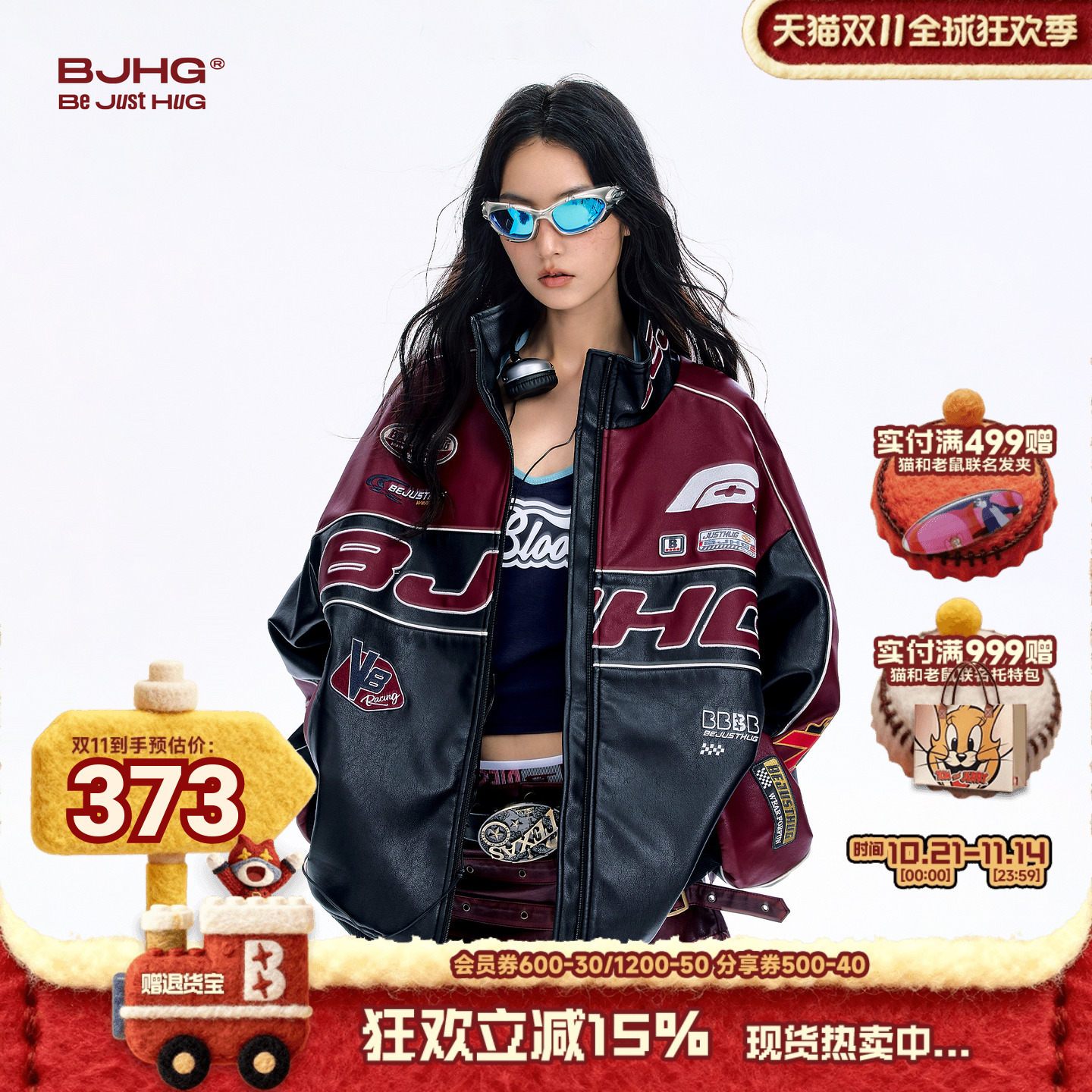 BJHG reckless American motorcycle suit leather jacket men's 2025 new autumn lychee pattern racing jacket women