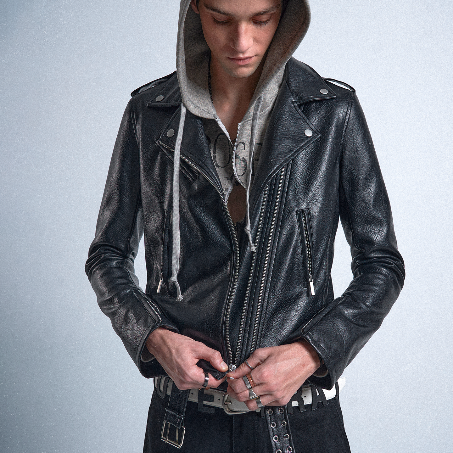 REBEL WAVE24FW "WØR" Crackle Leather Jacket Multi-zipper Detachable Fur Jacket with a Fur Collar