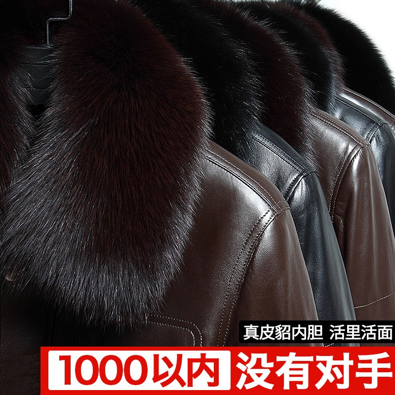Middle-aged and elderly leather jacket male dad outfit Haining fur winter men's fleece thickened fur collar jacket leather jacket