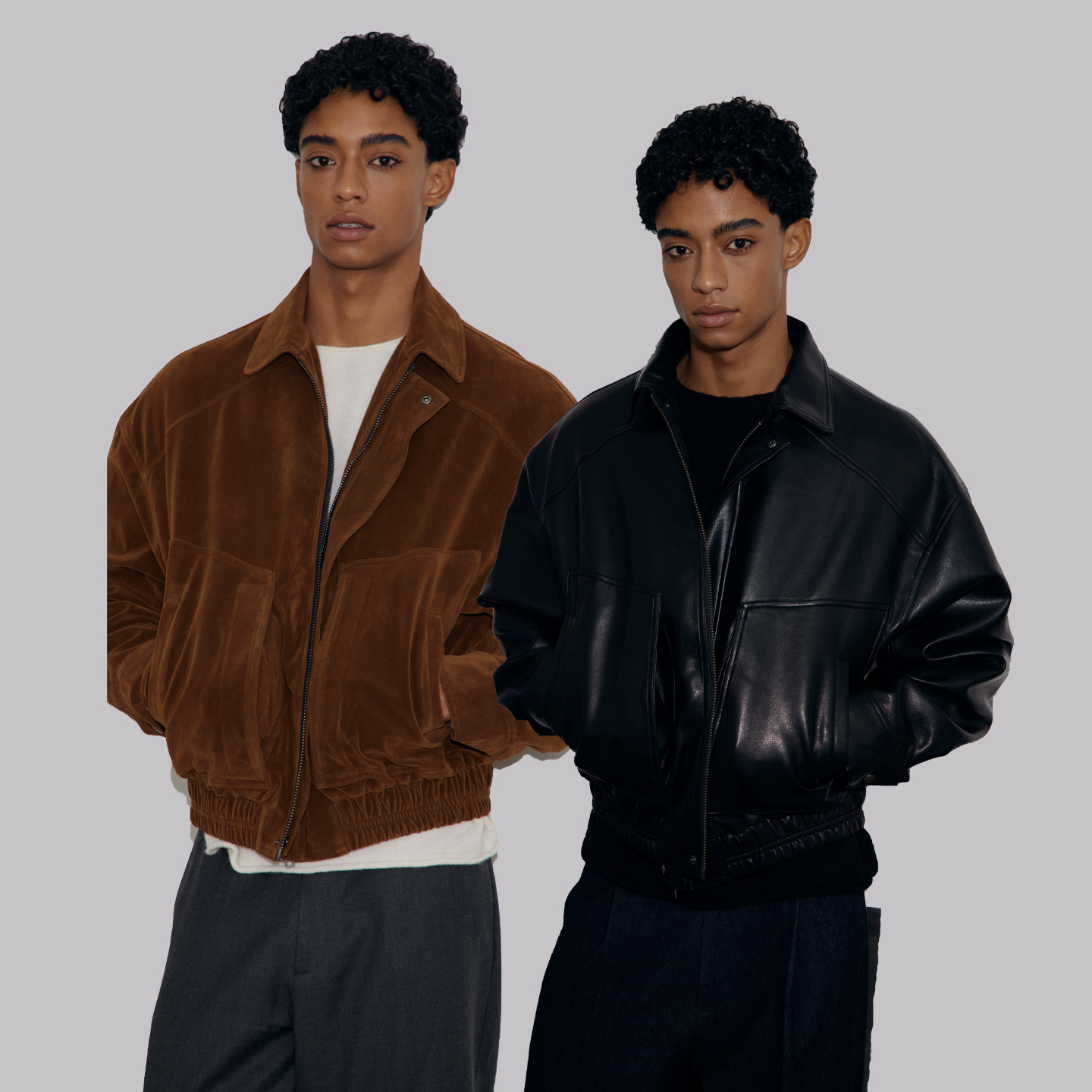 Mr. Jiangnan NewJNXS vintage lapel double zipper leather jacket men's and women's casual logo embroidered jacket