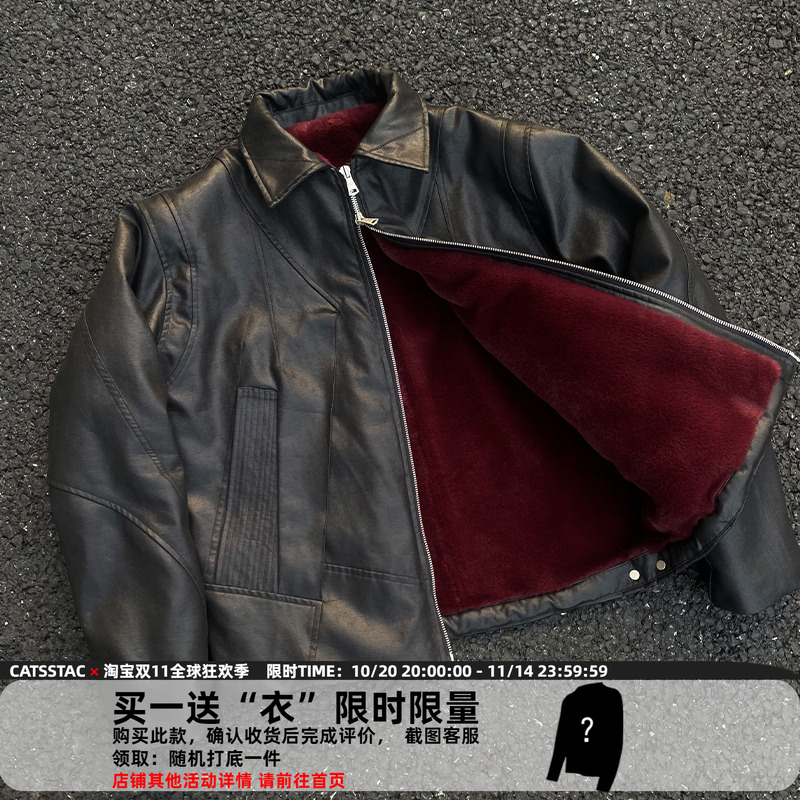 Trendy leather jacket men's winter 2025 new American retro ruffian motorcycle suit casual loose leather jacket