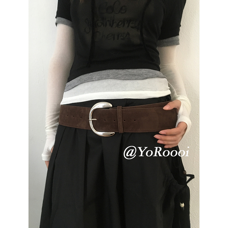 YoRoooi niche vintage y2k hot girl suede matte wide-brim wide-brim belt silver buckle waist seal with layered wide version