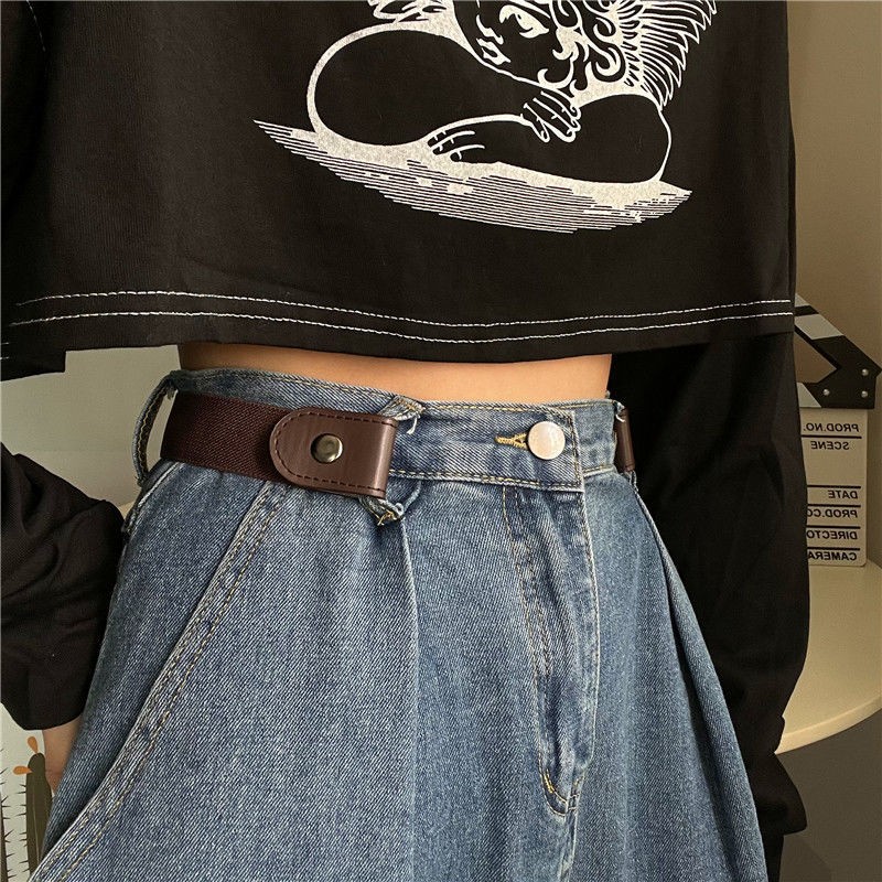 South Korea's Dongdaemun 2025 new Korean version of the black small belt is non-perforated, the female student buckle belt is soft and does not need to be punched