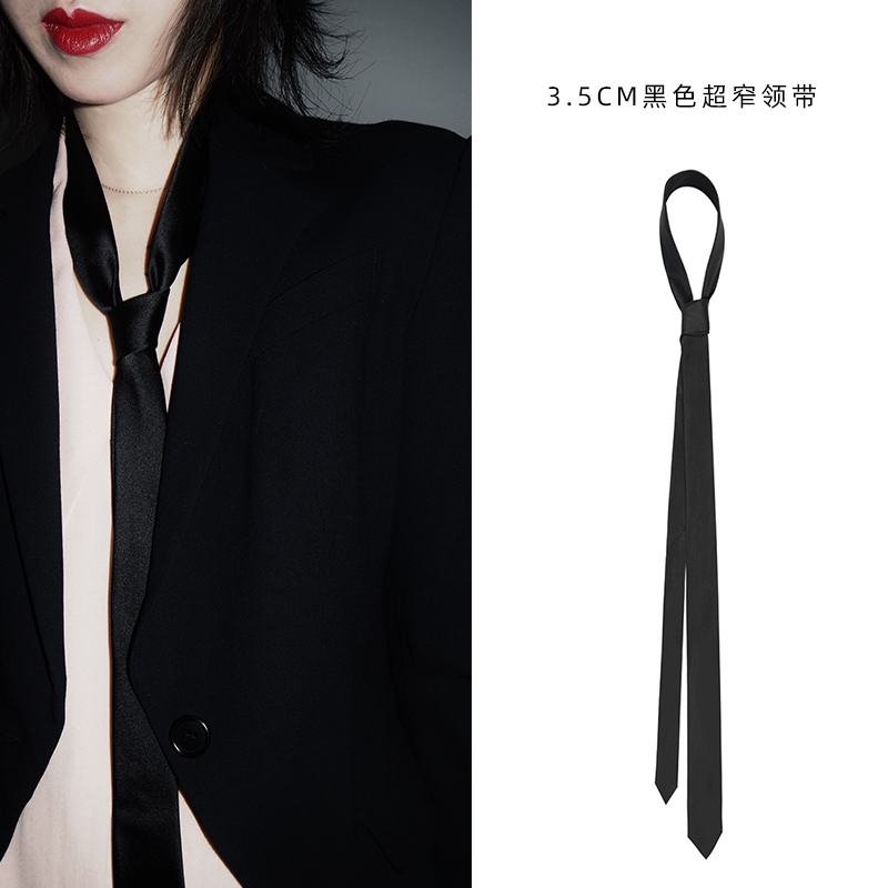 Korean black tie men's casual shirt women's fashion trend hand-tied collegiate style narrow student solid color 3.5cm