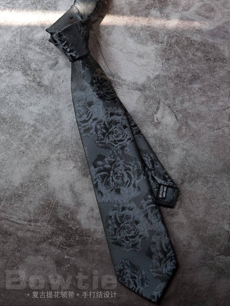 Patterned tie vintage casual high-end sense hand knot Korean suit shirt embroidered floral black gray for men and women