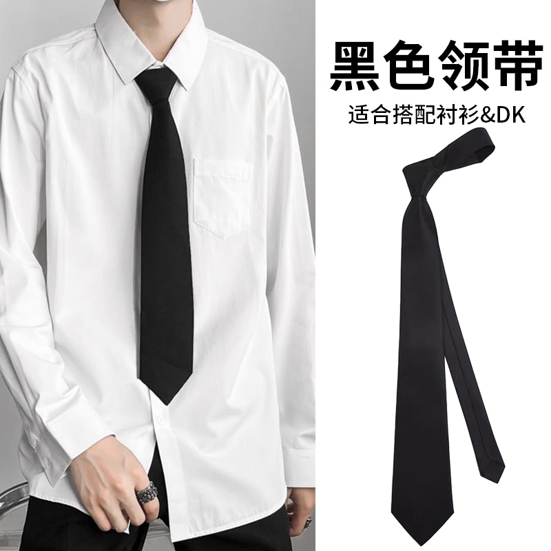 Korean black tie men's casual shirt women's fashion trend hand-tied collegiate style narrow student solid color 3.5cm