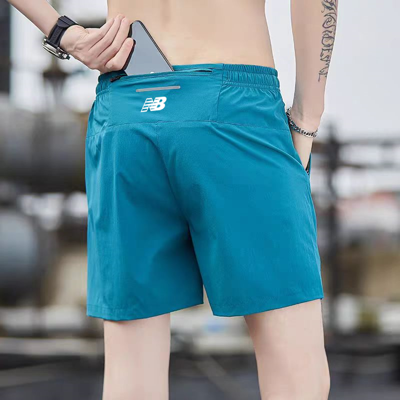 Sports shorts men's casual quick-drying running fitness ice silk can put mobile phones summer marathon zipper pockets five points