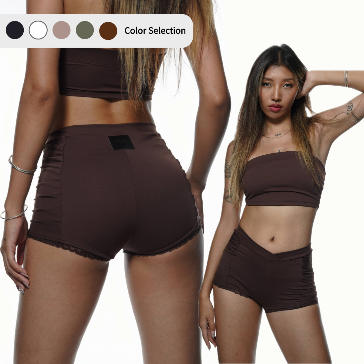 Fitness girls anti-light sports shorts thin summer vacation two pieces high waist drawstring running yoga three-point pants set