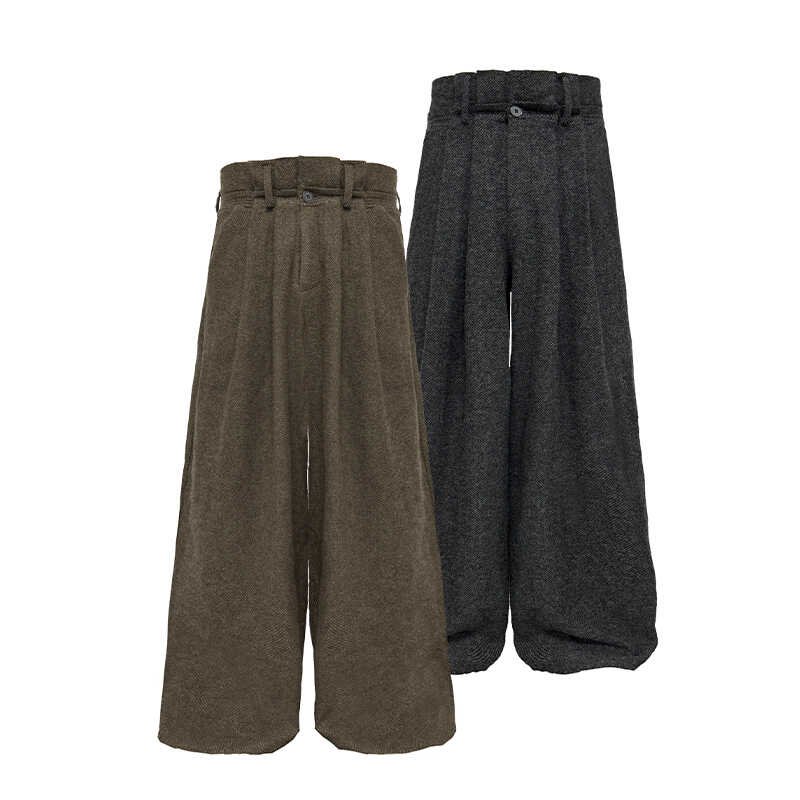 JCAESAR WOOL PANTS 85% sheep wool numb texture double waist pleats