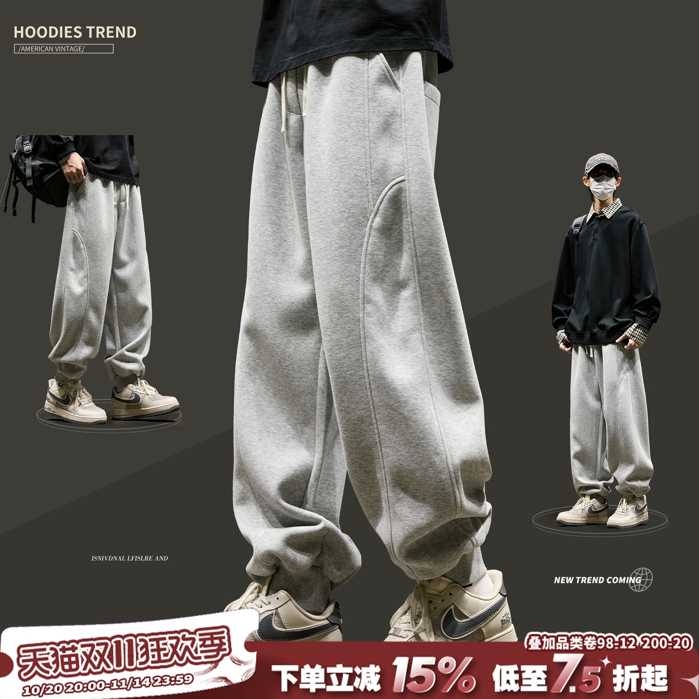 Heavy sweatpants men's autumn simplicity deconstructed design American scimitar pants men's trendy brand sports and casual leggings