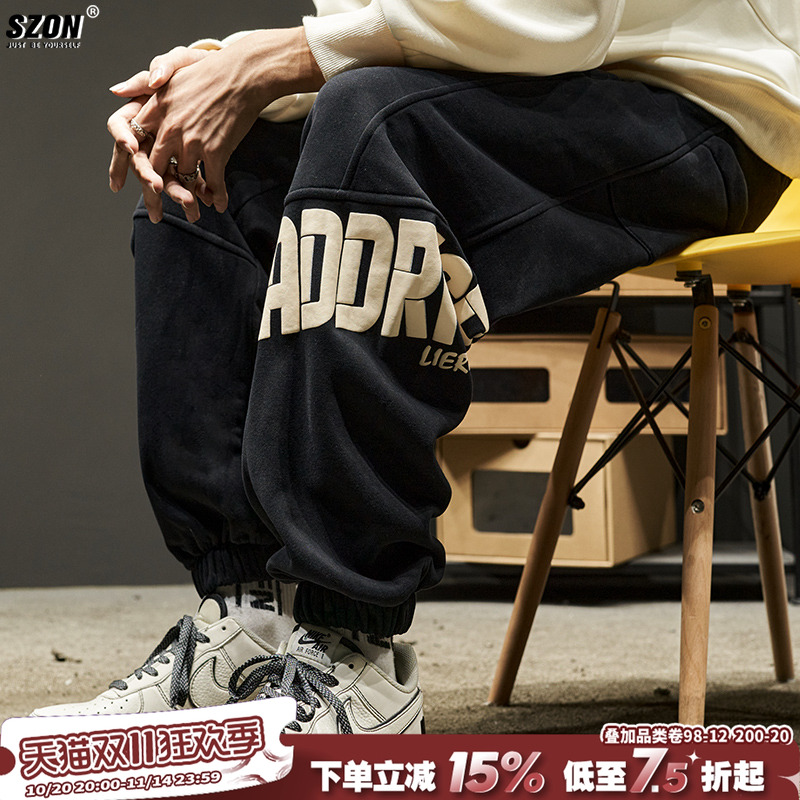 Pull-back sports pants, men's spring and autumn new youth loose fleece sweatpants, men's autumn and winter plus-size slacks