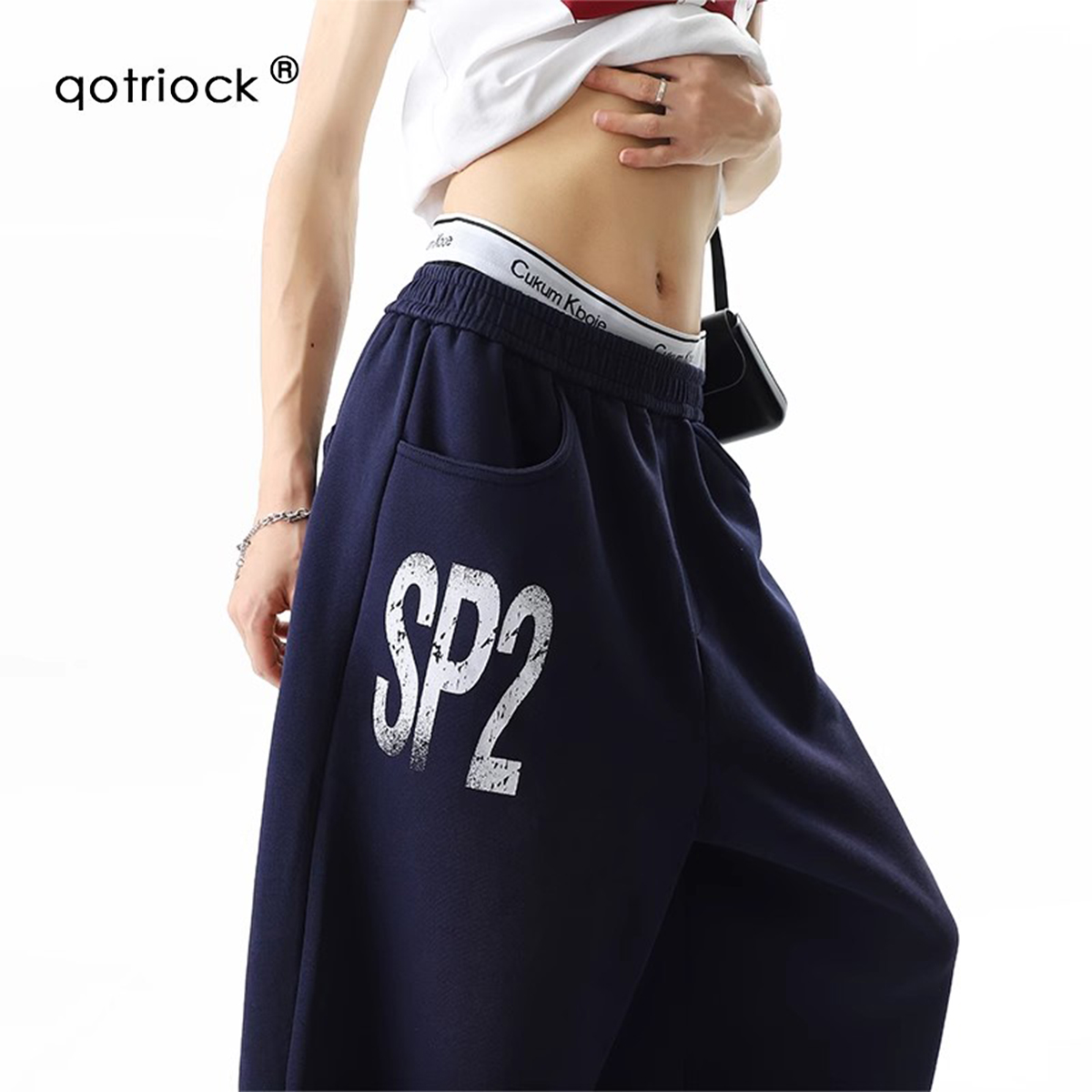 American heavy letter print drape sweatpants for men and women, autumn trendy brand loose athleisure pants, street dance wide-leg pants