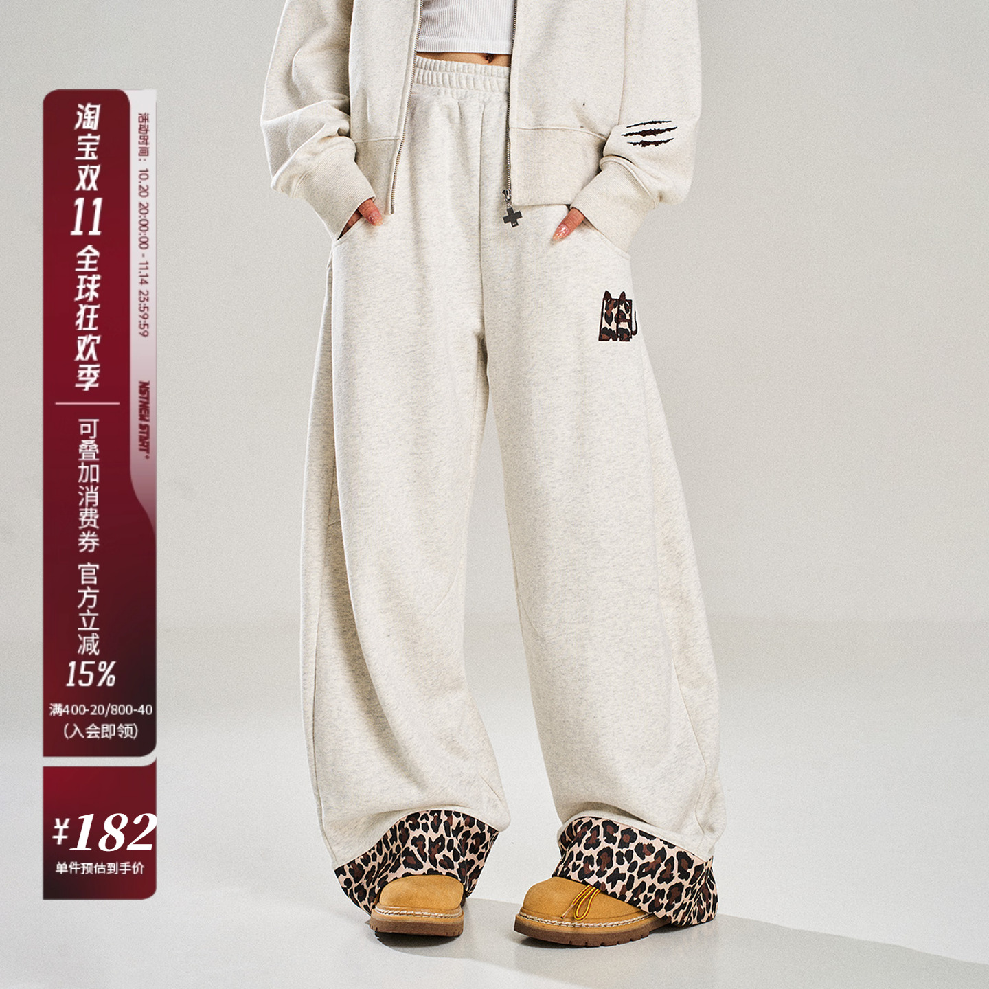 NSTNEW START sprouting plan little devil leopard print patch American vintage sweatpants wide-leg loose sweatpants