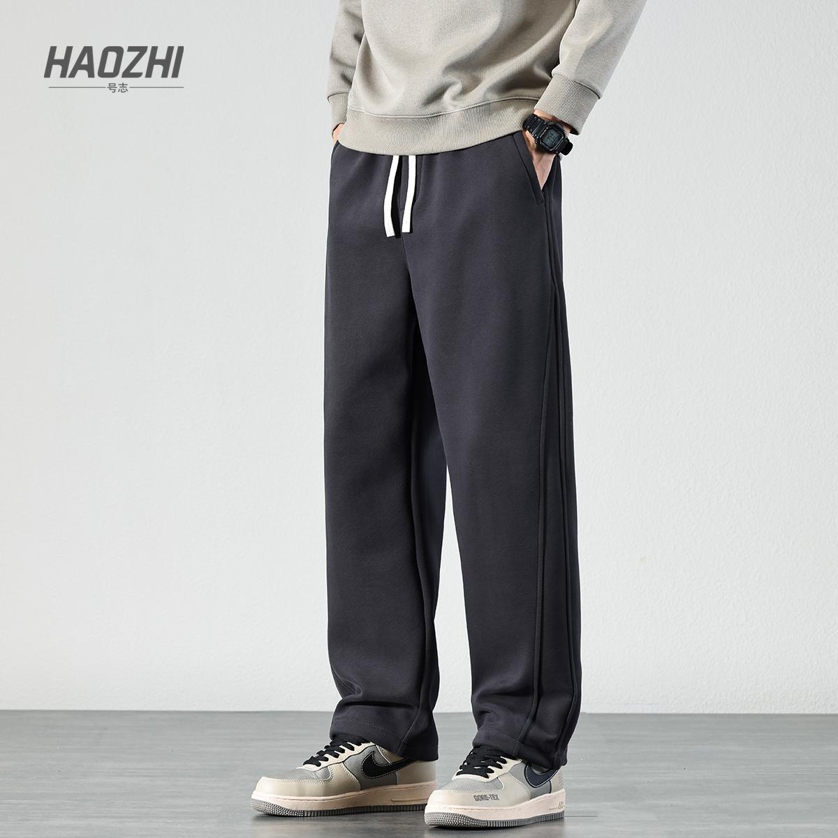 HAOZHI2025 fall and winter fleece loose straight sweatpants men's trendy brand elastic waist drawstring casual sports pants