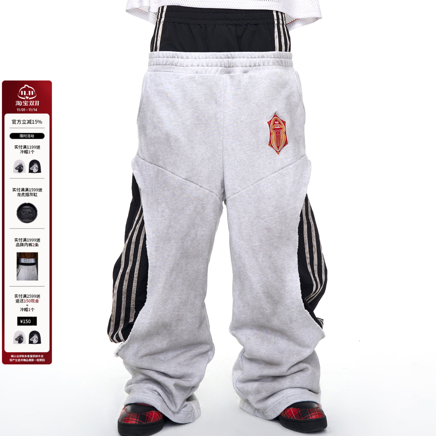 Fourth3ex 25FW Fake Two-Piece Double-Waisted Sweatpants Men's Autumn Three-Bar Stitching Contrasting Wide-Leg Pants