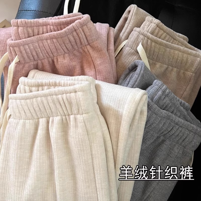 Clearance picks up leaky foreign trade tail goods plus fleece narrow slacks women's spring and autumn high-waisted straight leg wide-leg sports long pants