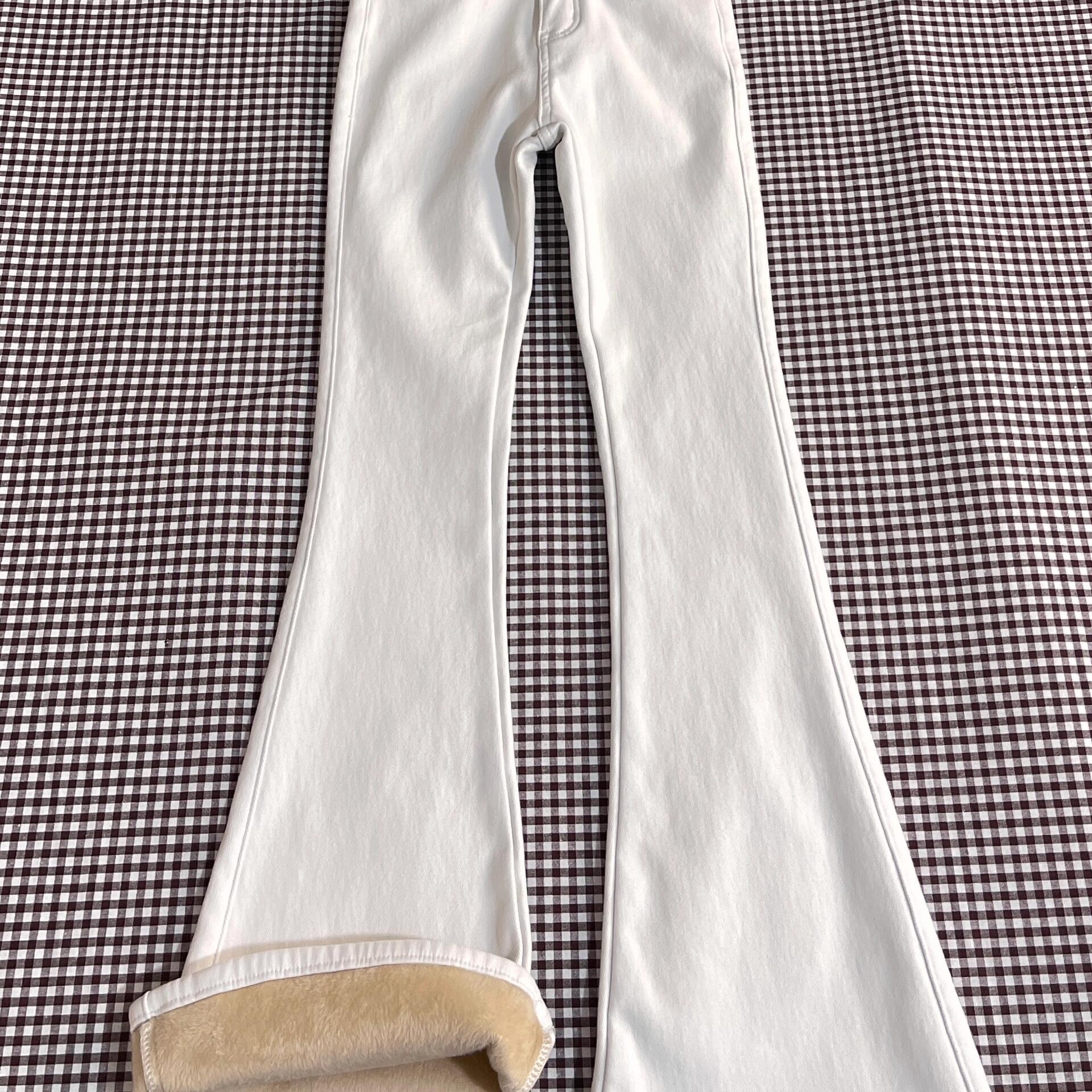 Off-white fleece micro-flared jeans women's autumn and winter new high-waisted stretch slim slim small horseshoe pants