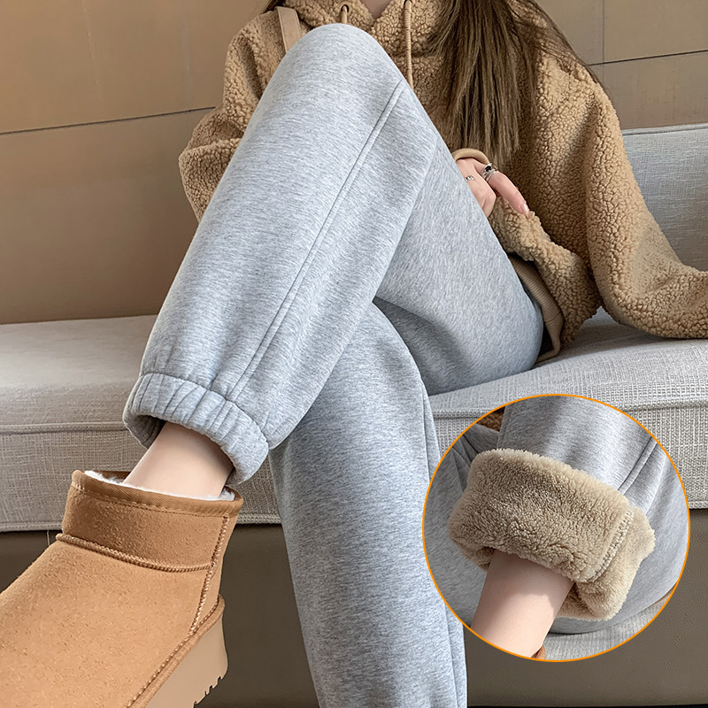 Plush sweatpants women's autumn/winter 2025 new thickened gray sweatpants high-waisted corched winter lambswool cotton pants