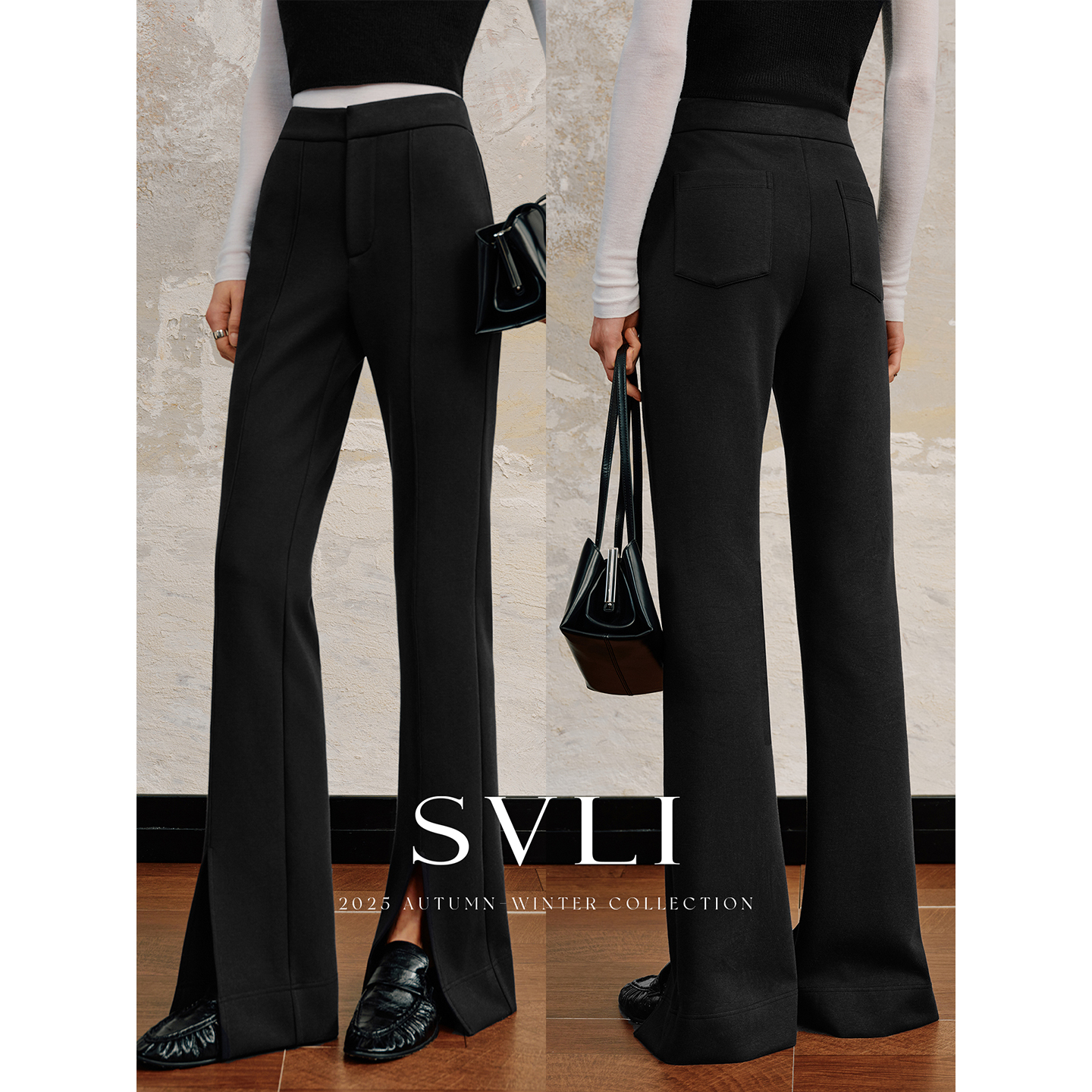 SVLI|''Thread Carving God Pants'' Fashionable Long Leg Fine Wool Modal Air Layer Slim Flared Slit Sweatpants