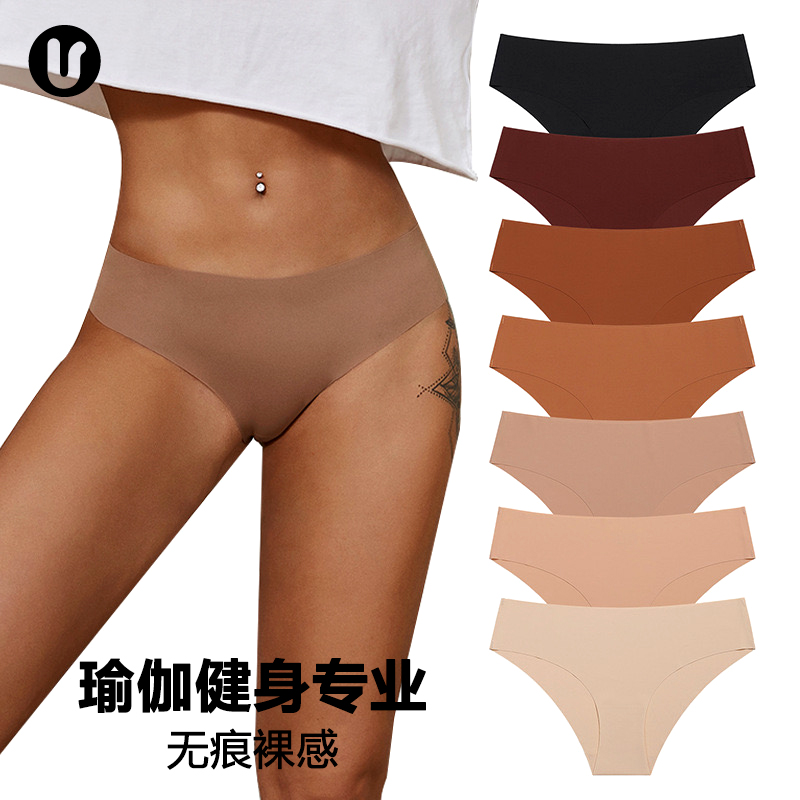 Umeko seamless ice silk panties for women without clamping the buttocks for yoga fitness sports special non-curled triangle shorts