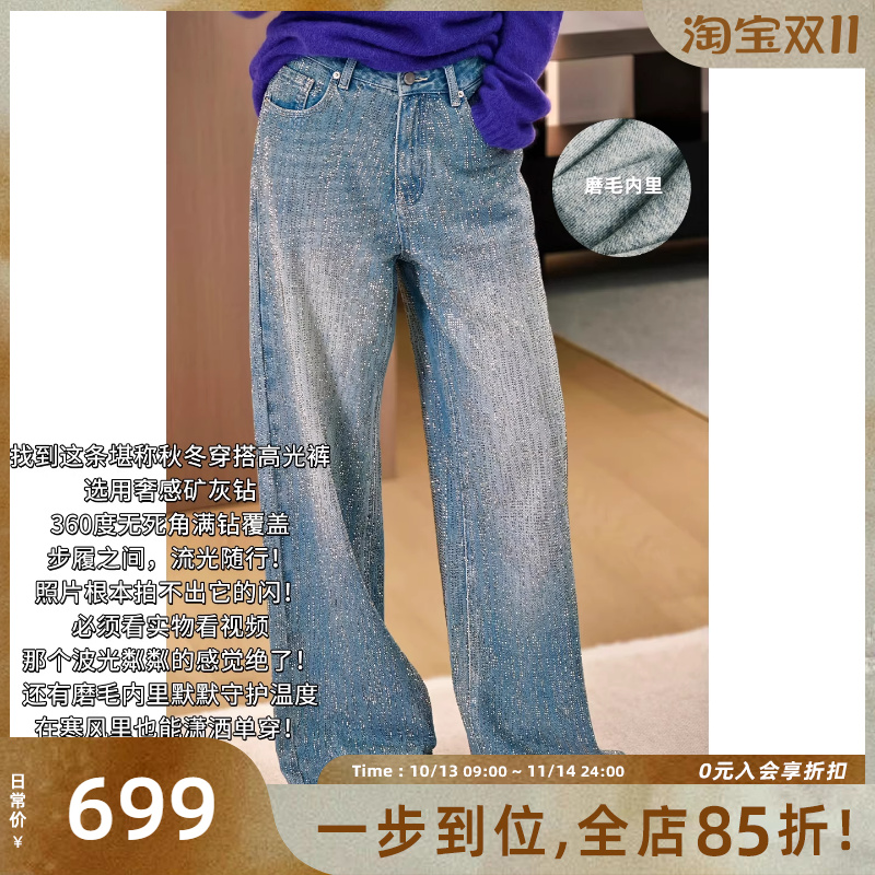 La Chapelle Starry Sky Pattern Wide-Leg Jeans Women's Fall/Winter 2025 New High-Waisted Loose Plush Narrow Straight Pants