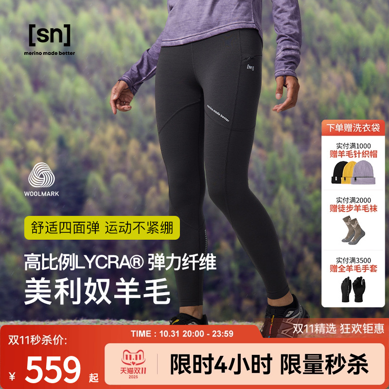 【New Product】SN Merino wool leggings women's anti-odor high elastic fitness cropped pants baba elastic series