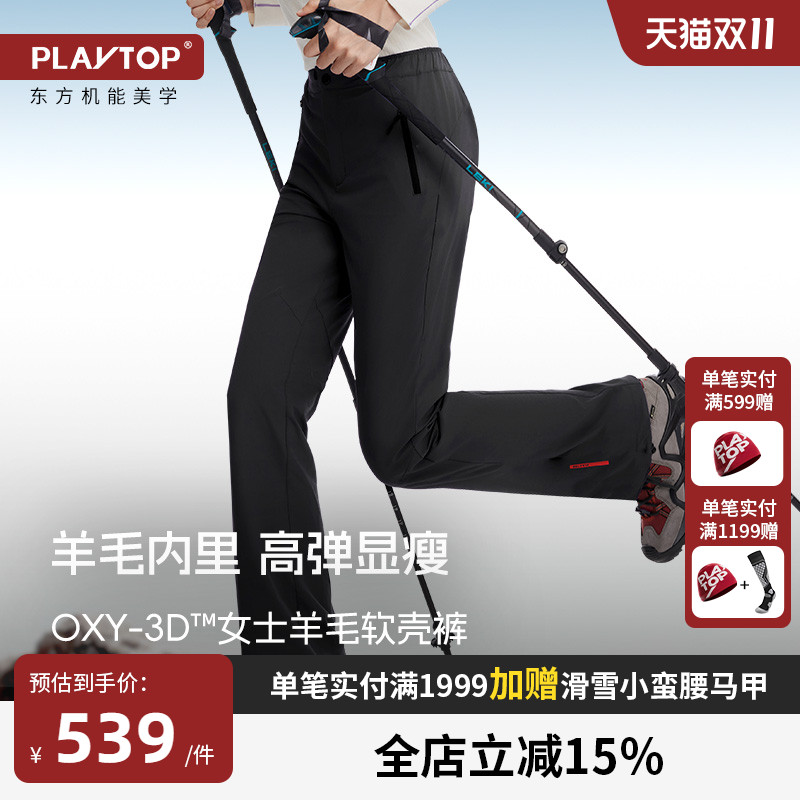 PLAYTOP outdoor wool softshell pants women's wear-resistant and water-repellent slimming slender hiking mountaineering paratrooper pants