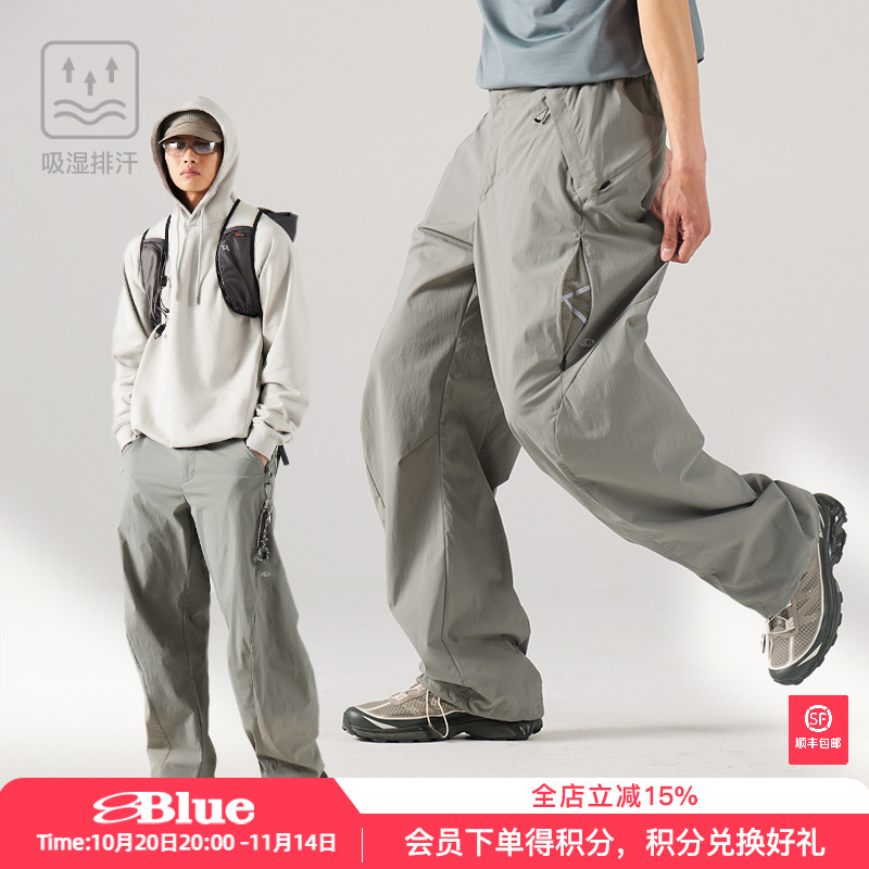 Blue Qi function wide-leg athleisure cargo pants outdoor moisture-wicking geometric cut corset scimitar pants for men