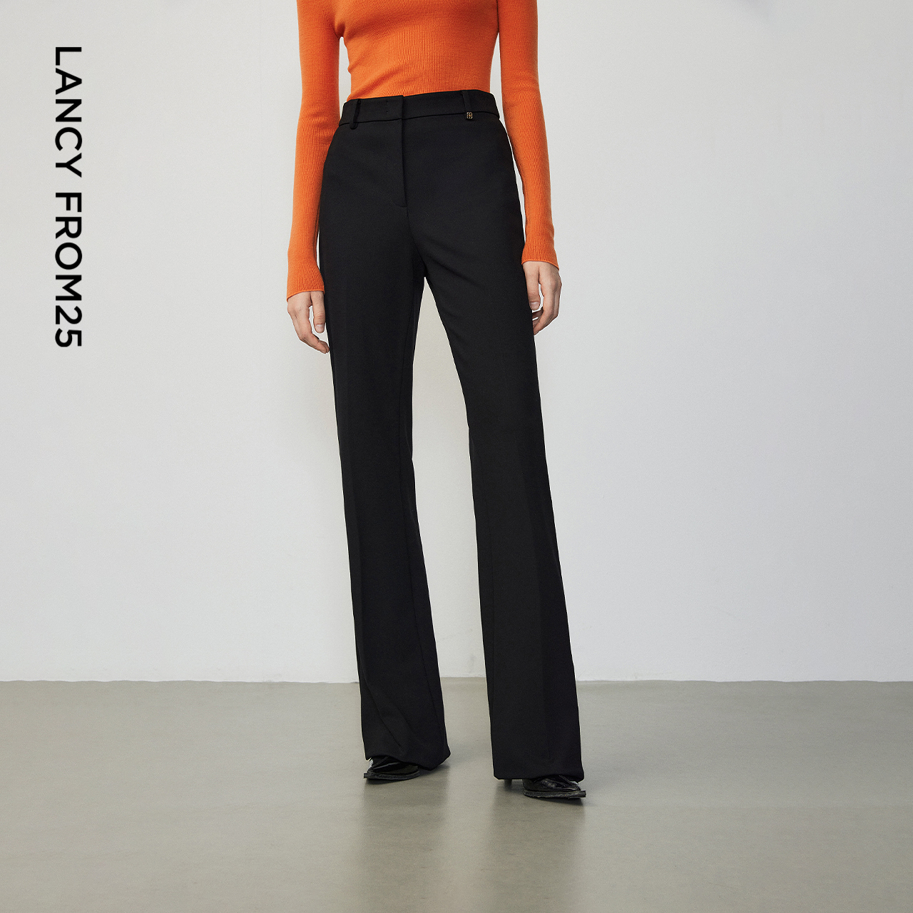 Langzi retro temperament, slimming high-waisted black slacks, flared pants, horseshoe pants, new summer long pants